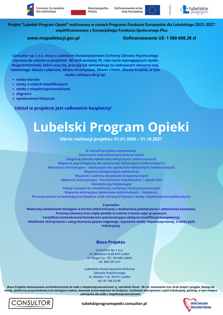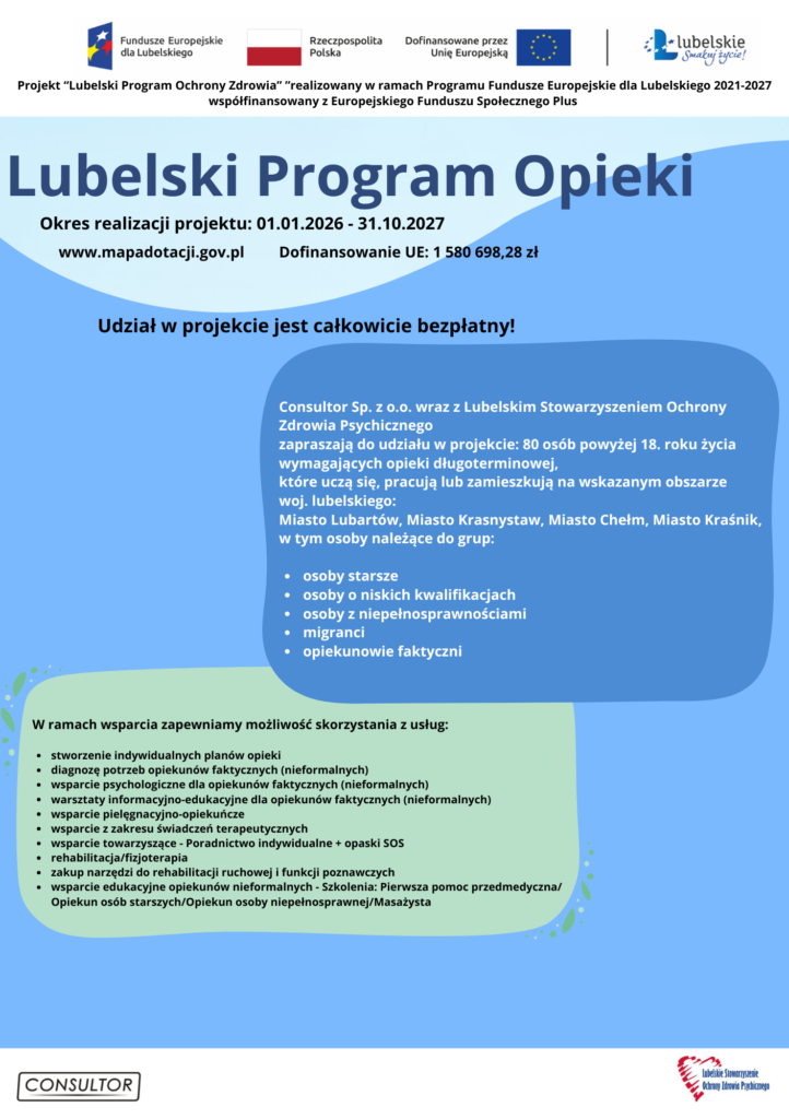 Projekt „Lubelski Program Opieki” realizowany jest przez firmę Lubelskie Stowarzyszenie