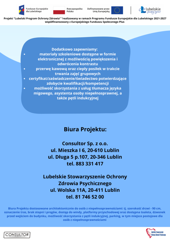 Ochrony Zdrowia Psychicznego w partnerstwie z firmą Consultor Sp. z o.o. .Projekt